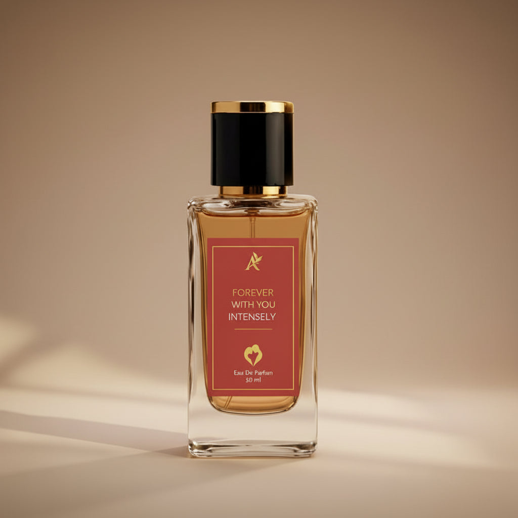 Love smells like this. Forever With You Intensely is a deep, burning embrace of warm caramel, fiery cinnamon, and soft earthy woods. It clings beautifully to the skin and radiates a warmth that feels personal and passionate. For the romantic who means every word.